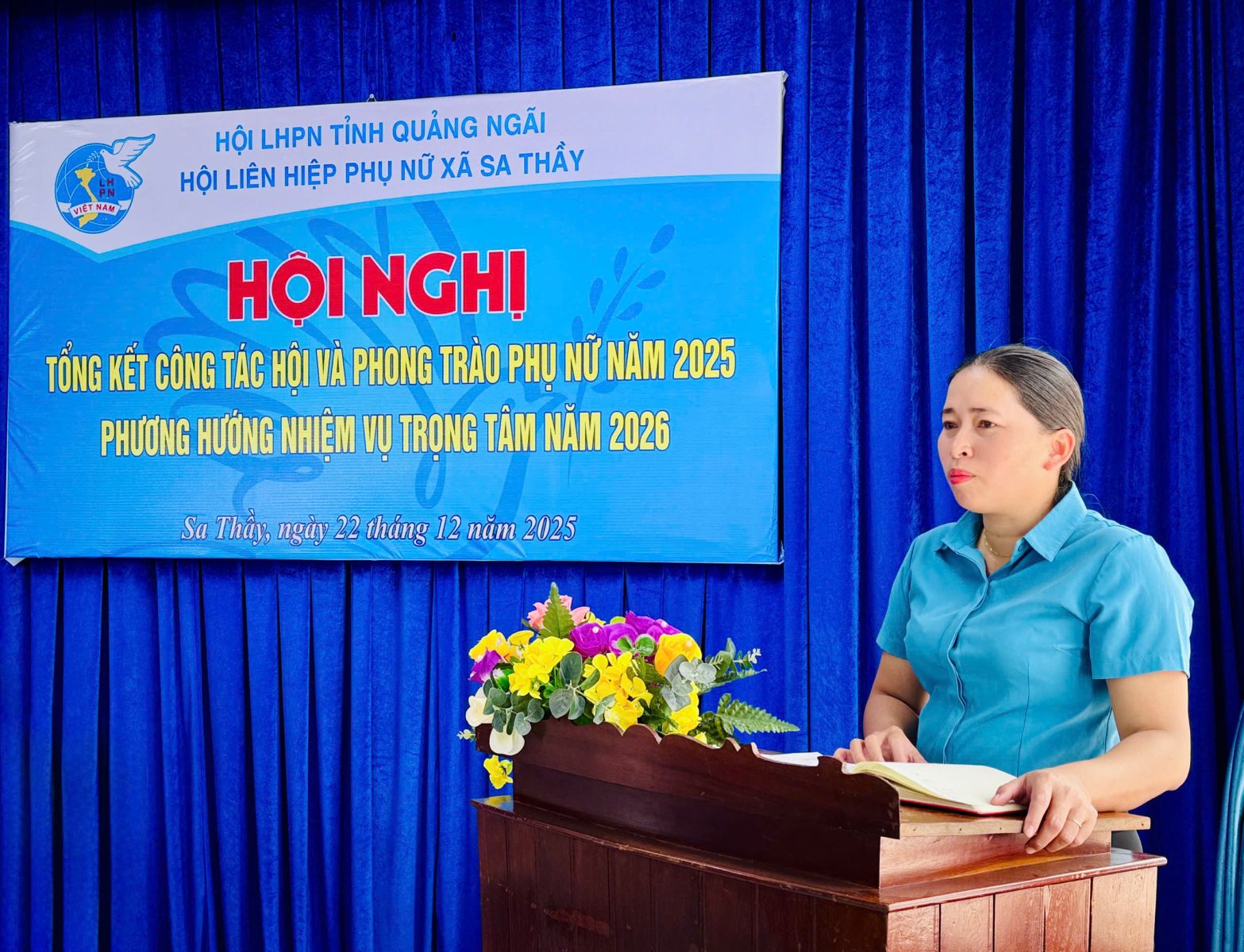 Phát biểu tại hội nghị, Đồng chí Võ Thị Tuyết, Phó Bí thư Thường trực Đảng uỷ xã ghi nhận và đánh giá cao những kết quả Hội LHPN xã đạt được trong bối cảnh còn nhiều khó khăn. Đồng chí đề nghị trong năm 2026, Hội LHPN xã cần tiếp tục bám sát Nghị quyết Đại hội Đảng bộ xã; tăng cường tuyên truyền, vận động hội viên áp dụng tiến bộ khoa học kỹ thuật và chuyển đổi số vào sản xuất, đời sống, đặc biệt mỗi cán bộ, hội viên cần chủ động xây dựng kế hoạch cụ thể, thiết thực, gắn các phong trào thi đua với nhiệm vụ chính trị của địa phương, góp phần xây dựng xã Sa Thầy ngày càng phát triển.